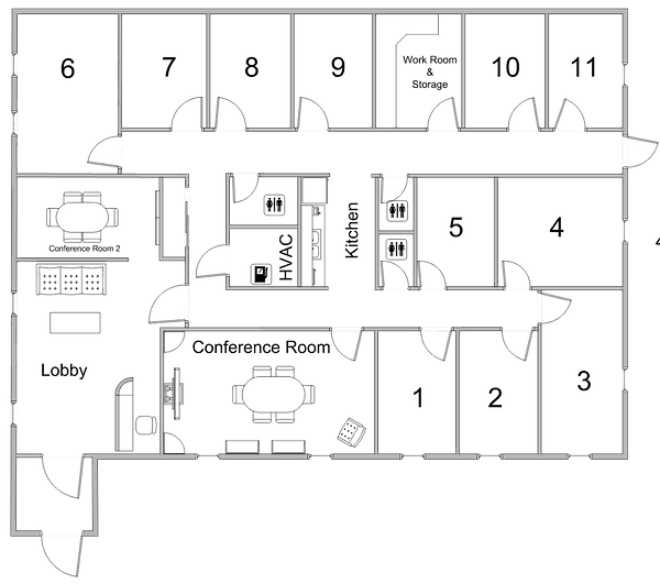 This is a fully furnished office on the front (north) side of the Tech-44 building. This office is an inside office and has no window.
